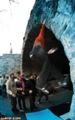 Было жутко холодно! Даже Toni Lamprecht, самый морозостойкий болдерингист в мире, лазал, к разочарованию многочисленных болельщиц и болельщиков, НЕ С ГОЛЫМ ТОРСОМ! Настолько было холодно! Но все же без сенсаций не обошлось. Лазили по правилам соревнований болдеринговых соревнований на открытом воздухе, когда баллы насчитываются за лазание на время, за решение болдеринговых проблем и за рискованные и эффектные выступления. И в конце мог быть только один победитель. Christian Benk добросовестно готовился две недели в Bleau и поднялся на стены просто танцуя, так что это было сплошное удовольствие. Кстати, об удовольствии, не всегда на скалолазных соревнованиях видишь столько радостных лиц, как на этих фотографиях! Спасибо всем, кто был с нами, и Gregor’y Jager’y и его Kletterfabrik («Скалолазная фабрика») за пиццу и тепло.