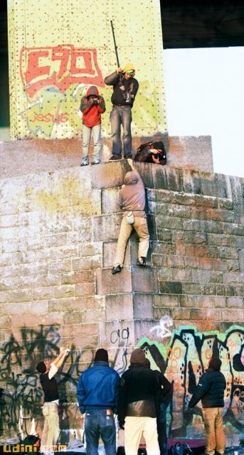 Билдеринг, лазание по зданиям, опорам мостов и т.д. имеет в Кёльне давнюю традицию. (Вот некоторые фотографии). Уже в середине 80-х мотивированные скалолазы и кёльнские легенды скалолазания Gregor Jager и Udo Neumann пробовали себя на самых разных каменных стенах в Кёльне. Кроме явно привлекательных мостовых опор жертвами неутолимой скалолазной страсти главных действующих лиц также стали каменные стены парка Фриденспарк и другие различные места в Кёльне.